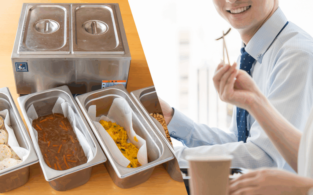 「全品盛り付けコース」「お弁当コース」を選べるため、社員の健康維持とランチタイムの満足度向上に貢献します。